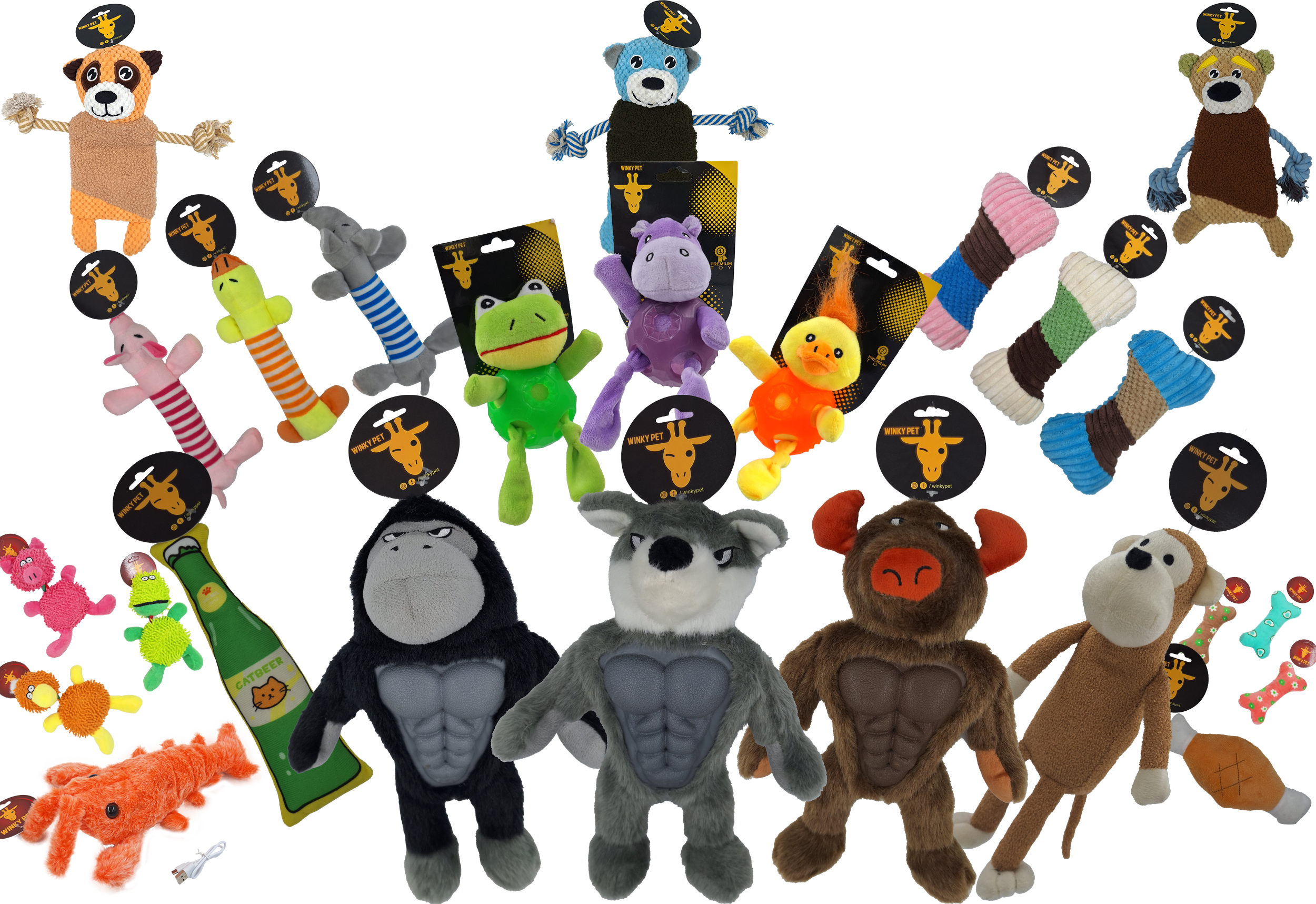 Uma seleção de brinquedos em pelúcia para pets! O grupo Invicta se preocupa em manter o alto nível de qualidade dos materiais dos brinquedos para seu pet!